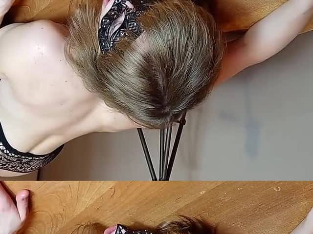 Sexy french honey crawls from below the desk and screws her chap