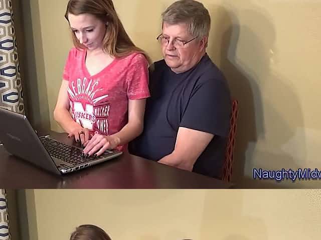 Fresh teen, Lola Hunter and her elderly landlord are often having sex on his working desk