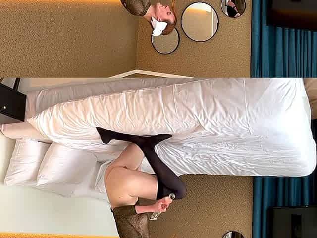 Amateur escort Emma Blaak preps her ass for a customer with a glass dildo