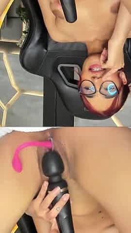 Horny Latina MILF Lunaxscorpia Drips Thick White Cream on Pink Dildo Watching Porn