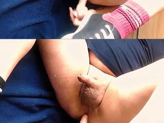 Close up with teen pussy pleased with dildo and vibrator