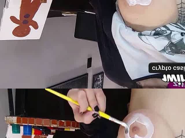 Pintando o meu corpo enquanto lambo um biscoito enorme e delicioso em vídeo pornô!