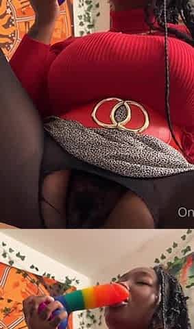 Busty Ebony Fucks a Dildo in Her Torn Leggings Tights