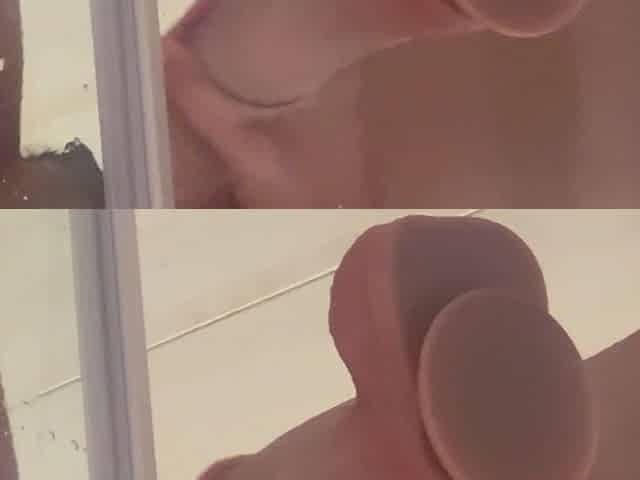 Latina MILF Stretching Pussy with Huge Cock Dildo in Shower