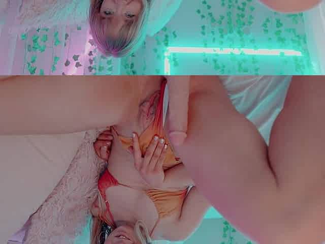 Blonde Squirts with Dildo in Ass and Fingers Pussy on Webcam