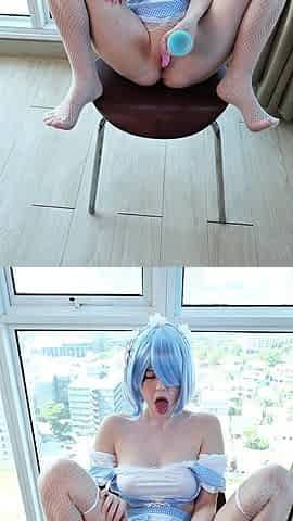 While Master Is Away, Rem Decided to Wreck Her Pussy with a Huge Dildo