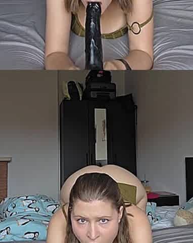 Curvy Redhead Gives a Black Dildo a Sloppy Blowjob