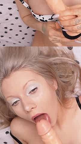 I Greedily Swallow the White Dick Until I Get Sperm, It Pounds My Throat to the Very Tonsils - Sperm on My Face!