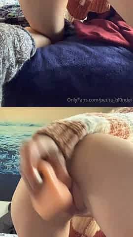 Tiny-titted babe toys her ass and pussy to orgasm on webcam.