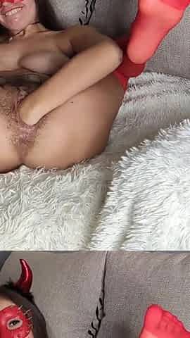 Devil Slut Fucks Her Hairy Cunt with a Big Dildo! an Incredible Amount of Squirt and Piss!