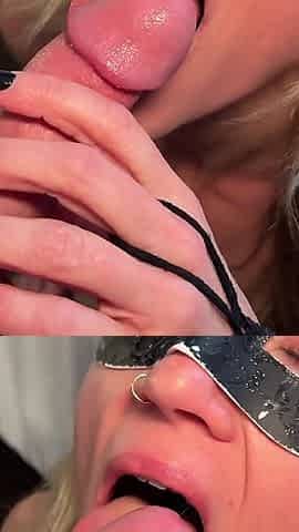 Blonde with Big Boobs Gives Blowjob to Her Dildo on Liv more