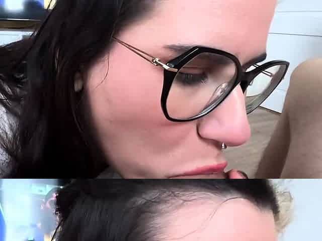 Dirty Slut Gets Horny Blowjob with Cum on Her Glasses!