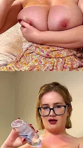 Dirty Talking BBW Deepthroating a Dildo and Stuffing Another Between Her Big Oiled Tits