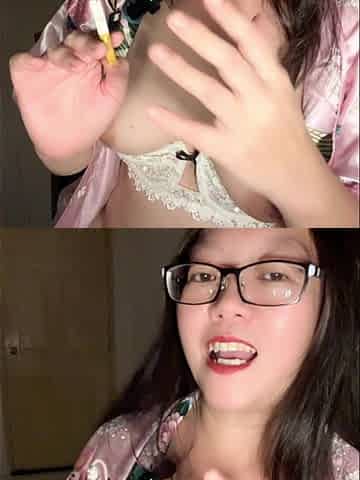 Darkside Smoking Asian Gooning: Wheezing, Coughing, Topless MILF Invites You to Cum on Her Boobs
