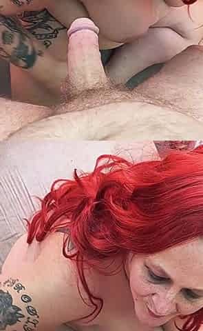 Red-haired step-mom and stepson's doggystyle while chatting dirty, cunnilingus and hot hook-up story in front of mom.