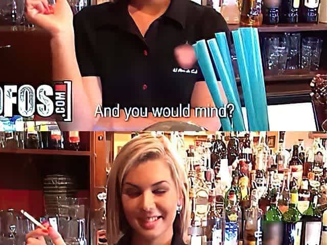 Rihanna Samuel gets her tight pussy pounded hard and messy by a customer behind the bar