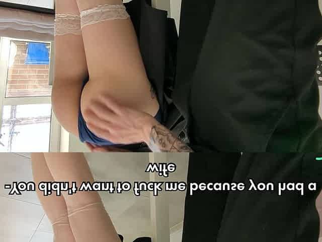 BJ POV babe with medium boobs talks dirty and sucks dick