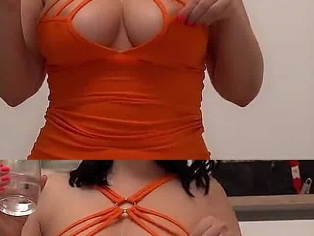 Nasty Slut with Big Natural Boobs Wants to Add Cum From Her Dirty Panties Into Her Beverage