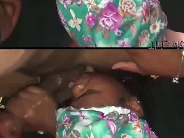 Dirty mega-bitch gargles knob before getting penetrated