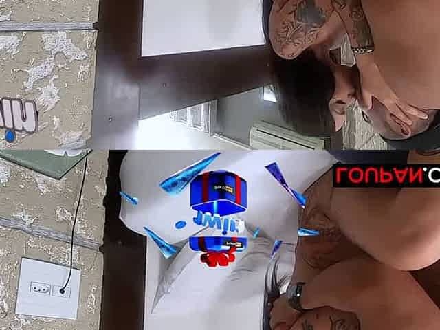 Dirty female with tattoos smoking and giving blowjob, taking man sausage from behind and drilling like a pornstar - the hottest!