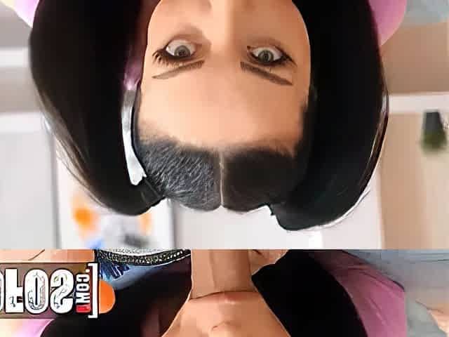 Sporty babe Hayliekyu dressed as Lola Bunny gives head and counts down to a cum shot
