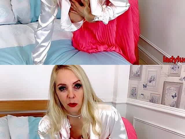 Big-Breasted stepmommy fingering her muff while talking dirty