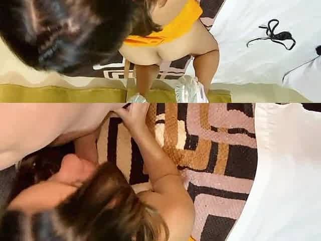 Horny stepsister A Berry gives a sloppy blowjob in tight gym leggings with eye contact