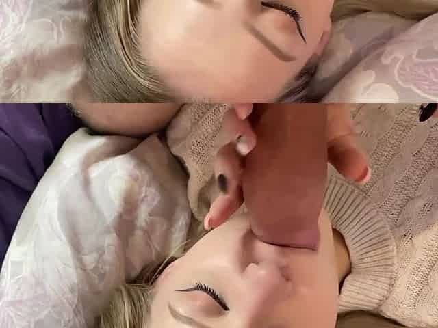 Blonde milf gives blowjobs on horny guys