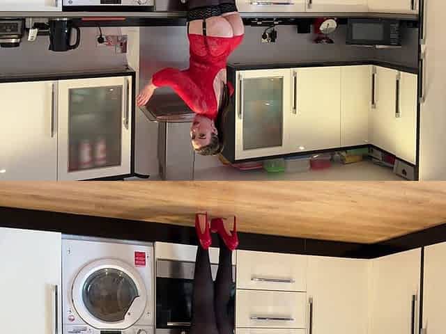 1690 - French Amateur Slut, Clothed Satin Red Dress, Pink Panties, Garter Belt, Heels and Stockings, Doggystyle, Blowjob, Ass to