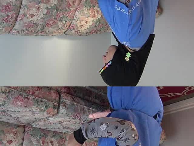 Blue Bodystocking & Downcoat Oral job – Warm Cum on My Coat