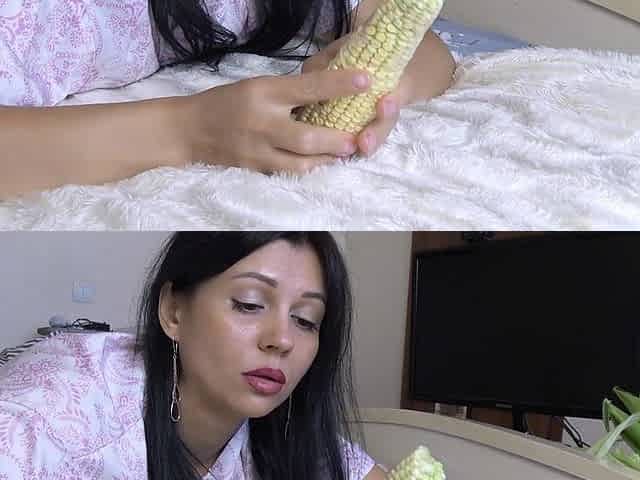 The Brown-eyed Brunette Decided to Treat Her Pussy with an Ear of Corn. What Came of It, See for Yourself.