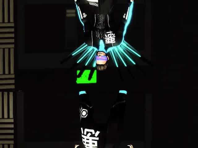 Cyber disco sex. A sexy nerdy girl in cuffs gets fucked by a disco man