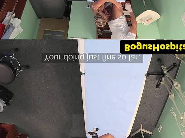 Sexy blonde is fucked by two lustful docs while the nurse su