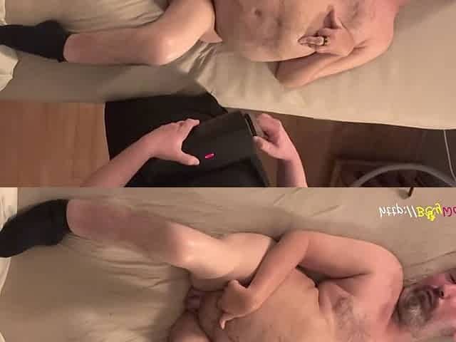 Brushing him to a climax with a milf nurse
