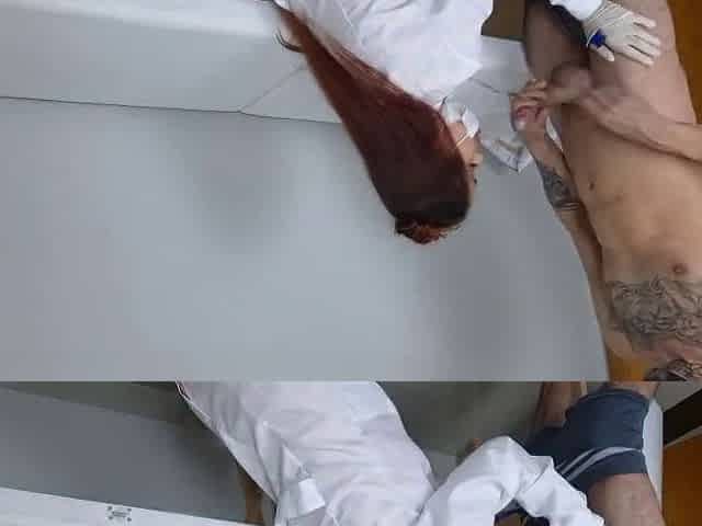 Big Booty Redhead Nurse Gives Deepthroat and Creampie Treatment to Patient