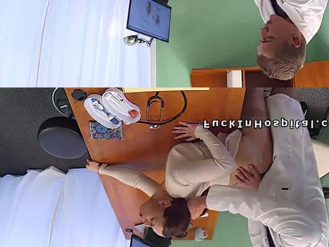 Slutty nurse fucked by lusty doctor in pussy in medical room