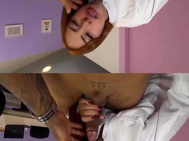 Naughty nurse Jennifer Pimenta catches the doctor during duty and gives him a private exam in the hospital bathroom
