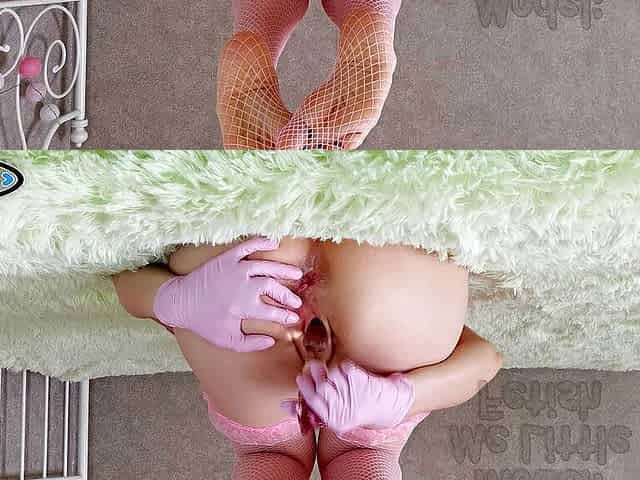 Medical doctor nurse latex gloves anal masturbation big butt plug petite teen 18+ model, ass is open and gaping