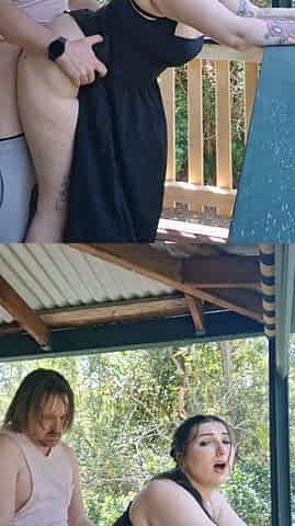 Goth stoner gets creampied on balcony