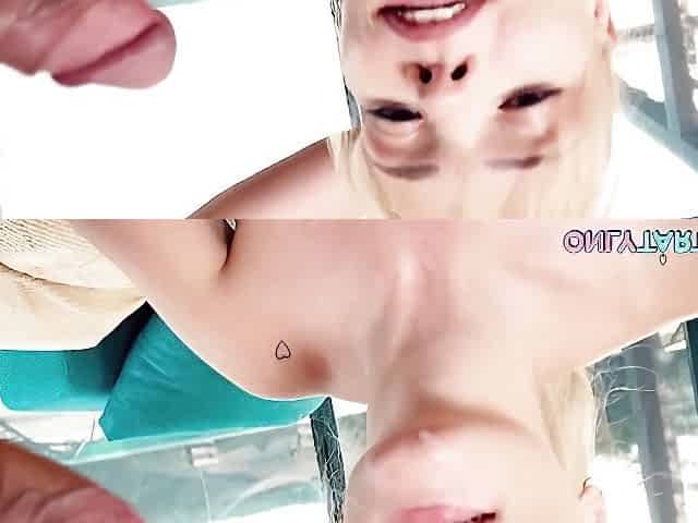 A young blonde hottie Jade J'adore impaled in the sideways pose