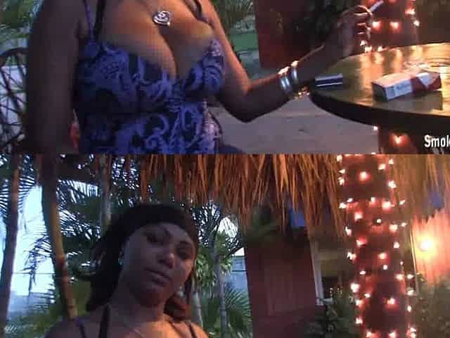 Blindfolded Dominican chick is sucking a large, ebony dick in front of the camera, for money