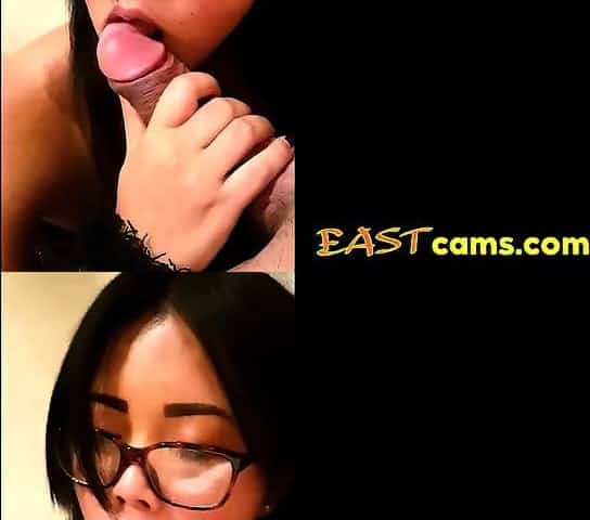 Amateur teen in threesome sucking cocks in dorm room in hd