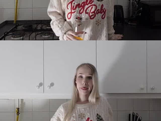 Amazingly charming small blond hawt college cutie in her dormitory kitchen getting willing for Christmas Party