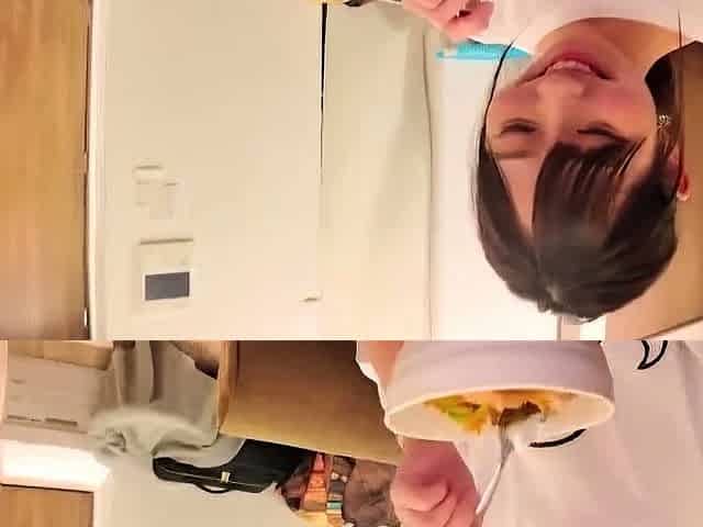 Nudist housewife Regina Noir cooks at the kitchen. Stripped maid. Nude housewife. s3