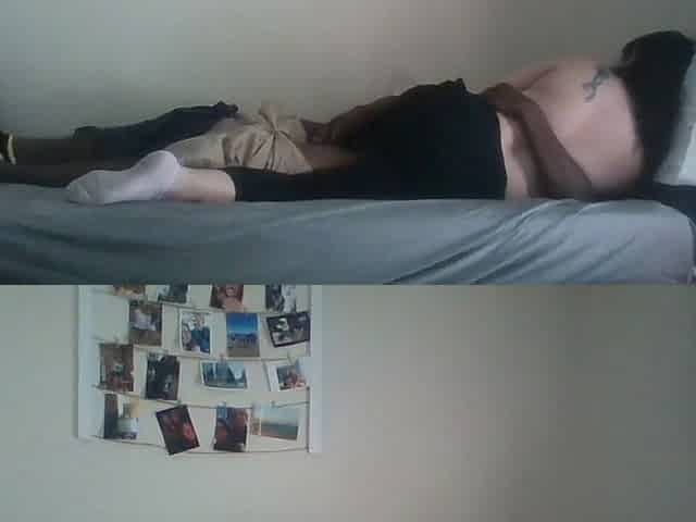 Student masturbates in the bedroom while her neighbors are in the kitchen Real Orgasm
