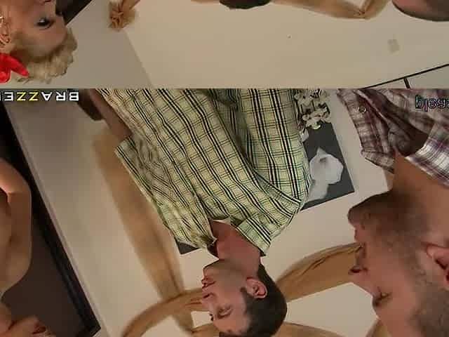 A big fuckfest ensues including several voluptuous blondes and well-endowed males.