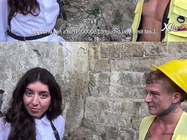 Construction Workers Gangbang Horny Brunette in Ruins Double Penetration