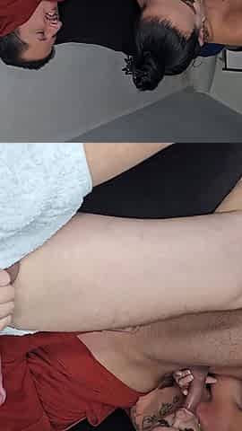 Two hot latina sluts takes a big cock double deepthroat fuck