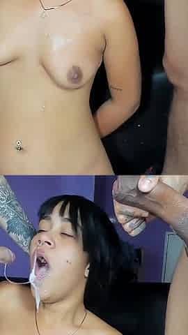 Group sex hardcore double blowjob swallowing cum