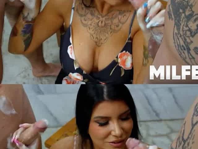 Hot MILF double fucking scene